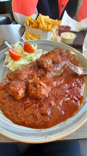 Well located frietuur with parking. The team is gentle and bring food at the table. Had frites with meatball in tomatosauce. The dish is attractive (see picture) . The additional sauces are good but can...