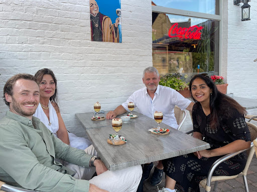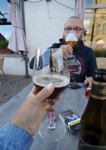 Wij gaan regelmatig speciaal naar daar om hun heerlijke Irish coffee .😋 Op deze foto met onze zoon en vrouw die in Londen wonen en op een kort bezoek kwamen . Was het de moeite waard deze plaats te tonen ,en om hun de Irish coffee te laten proeven . Alsook de unieke inrichting van de taverne te laten zien .