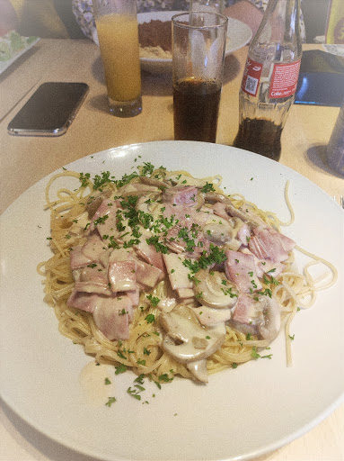 Read moreAlors que dire si ce n'est malheureusement assez déçue. Bien que les plats servit soient bon et plutôt copieux il faut savoir s armer de patience pour être servi. Une heure et demie a table pour qu'on vienne prendre notre commande et encore parce que je me suis levée pour allez appeler une serveuse. Ensuite bien que la commande soit prise 40 minutes pour avoir les boissons et 1h20 pour avoir les plats étant pourtant de simple pâtes. Je comprends les difficultés à gérer lors des coups de feu mais la c'était assez frustrant de voir d'autres personnes arrivées bien après nous recevoir les mêmes plats que ce qu'on avait commandé et cela bien avant nous. Mais bon on ne va pas se plaindre puisque les gens a côté de nous on attendu une heure de plus. Les enfants pleuraient pour avoir a boir, on a du réclamer plusieurs fois pour enfin les recevoir. La table même pas lavée une fois débarrassée, on avait encore les saletés des tables d avant pour manger, vraiment pas top. On avait dit aux enfants qu'ils auraient le droit a un dessert mais vu le temps d attente on a préféré monter prendre un desserte sur la place, bien plus remplie mais service beaucoup plus rapide. Même pour recevoir l addition la croix et la manière. On ne peut même pas blâmer les serveurs, ils sont en sous effectif vu le nombre de place assises et le débit demandé surtout par bon temps.
