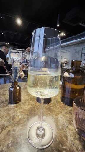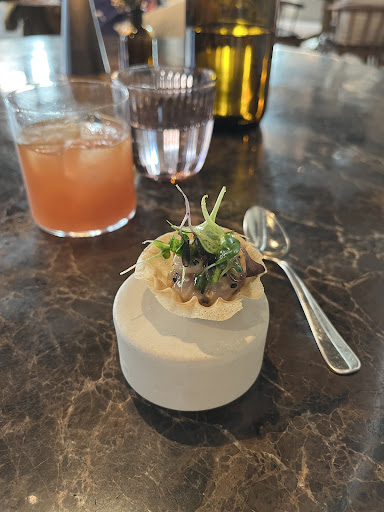 Read moreHier met 4 personen voor het eerst gegeten op een zaterdagavond. ETEN Qua menu dien je verplicht de 5-gangen te nemen op dat moment. Het eten is verfijnd en zijn creatieve combinaties die op een aantrekkelijke manier gepresenteerd worden. De amuses worden door de chef gepresenteerd aan tafel, een leuke extra. De porties zijn eerder klein, dus die 5 gangen heb je in feite wel nodig om met een voldaan gevoel van tafel te gaan. De smaak zit zeker goed: een aanrader. DRANK We namen met 2 personen de aangepaste bieren. Dit zijn echter geen aangepaste bieren, maar gewoon bieren die op de (beperkte) bierkaart staan. Op geen enkel moment wordt de link gelegd tussen het bier dat je krijgt versus het eten. Jammer. Iemand nam het non-alcoholische arrangement: dit zijn allemaal wijnen zonder alcohol. De begeleidende wijnen werden wel gepresenteerd, maar ook hier ontbrak de link met het eten, of werd alvast niet meegegeven door het personeel. SERVICE correcte uitleg en bediening, maar kwam 'robotachtig' over: van buiten geleerd tekstje dat werd afgerammeld. Weinig warmte of connectie met de klanten. Gezien de keuken maar 1 menu moet maken gaat de bediening snel, TE snel. We vroegen om het tempo te verlagen, maar dit bleek niet mogelijk. We konden alleszins niet volgen om het bier tijdig leeg te drinken (met enkele zwaardere bieren toch zoals Swiekes Trippel en Schuppenboer) SFEER industriële sfeer met open keuken. De zaalairco stond enkele graden te koud: naar schatting 21°C, verstaanbaar en aangenaam voor het personeel in de open keuken dat moet werken tussen de fornuizen, maar voor de klanten is dit te koud: de vrouwen hadden het koud en hier en daar zag je mensen hun jas terug aandoen.