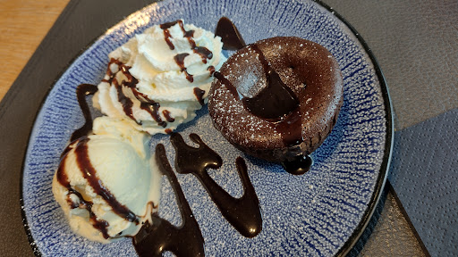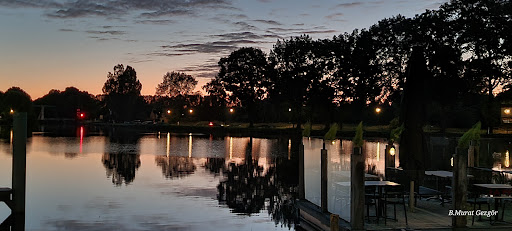 Read moreZeer mooie locatie aan de jachthaven in Turnhout, zorgt voor een vakantiegevoel. De service was echter teleurstellend. We hadden gereserveerd voor 4 personen om 18h00. Allereerst kwam de dienster al direct zeggen wat NIET beschikbaar was: geen zalm, geen kabeljauw, geen stoofvlees, ook geen cava of cocktails met cava. Toch wat veel missers voor zo’n horecazaak. Na besteld te hebben, kwam na een uur (!) dan ons voorgerecht (kaaskroketten, carpaccio). Niet slecht, ook niet wow, gewoon brasseriestijl. Maar daarna…. Wachten, wachten en nog langer wachten op het hoofdgerecht (4x steak met frieten en saus). Daarbij geen enkele informatie of excuses van het personeel. Enkel na ons beklag te hebben gemaakt kregen we een sorry en een drankje van de zaak. Uiteindelijk kwam onze hoofdschotel om 20h45, dus bijna 3 uur na binnenkomst! De steak en de frietjes waren gewoon oké, maar het bijhorende slaatje was bedolven onder een berg gebakken uitjes, wat niet iedereen apprecieerde. Als toppunt kwam de dienster ons enigszins gegeneerd zeggen dat voor het dessert ook al geen mokka-ijs beschikbaar was. Dus dan maar 2x ijscoupe en 2x chocolademousse, die niet lekker was. Al bij al een zeer frustrerende ervaring door de slechte organisatie in keuken en zaal, en het ontbreken van meerdere gerechten. Jammer, voor een zaak met zoveel potentieel. Ons zien ze alvast...