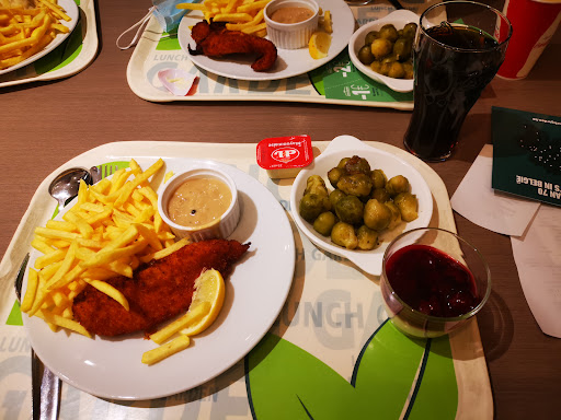 Van al het negatieve ik in de rij kommentaren heb gelezen hebben wij ik toch nooit iets ondervonden,Wij komen daar een twintigmaal per jaar .soms ook ontbijten op zondag.het is waar als men met eten staat aan te schuiven aan de kassa kan het wel een tijdje duren vooraleer men aan tafel zit.Vriendelijkheid aan de voedselbediening hangt af van persoon tot persoon.ik antwoord dan wel op zijn toon recht in het gezicht.kroketten zijn voor ons eens speicaal gebakken omdat de bediener vond dat deze die er nog waren niet meer warm genoeg waren.Mosselen zijn ook geen Jumbo's he.Dat moet men wel meenemen in de beoordeling..Een maand geleden was het ook everzwijn ragout......ik moest tegen de bediener zeggen ......how how t's genoeg ....echt waar. Ontbijt op Zondag is ook wel leuk om gewild of niet andere mensen in het oog te houden die het" all in concept" nogal uitgebreid interpreteren...Voor mij verdiend deze eetgelegenheid een 7,5op 10.Wij betalen voor lunch met twee gemiddeld met koffie er bij een € 35,00 à 40,00 .(business...