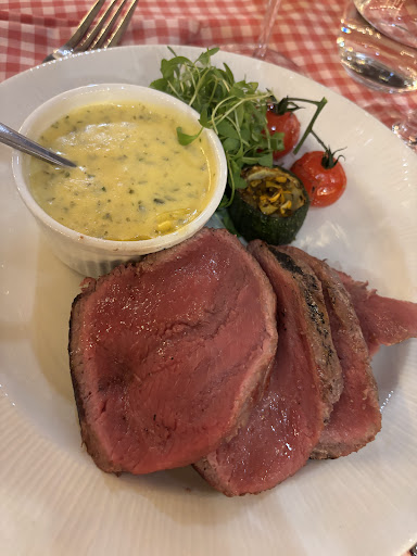 Read moreOne of the oldest restaurant in brussels with a great terrasse in the back. I went for the traditional menu that came with a very tasty soup of the day. As a starter i got a pretty decent terrine and for main i went for the flame grilles steak cause that's the house specialty (you can't miss the open fire coming in...) Can't remember what I had for dessert (it was a little while ago) but overall the menu felt like having a good dinner at your grandparents, in a good way. Portions were big and it was a very satisfying experience. I feel like it's a place i'll have to go back to in winter to enjoy...