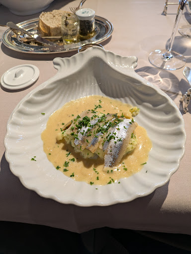 Read moreBinnengegaan door het aanbod voor een lunch. Eerste aanblik deed ons veel beloven. Mooi gedekte tafels met verzilverd bestek. Bij nader toe zien was het vergane glorie. De maaltijd was dat ook. Opgediend op een ouderwets bloemenbord, kregen we zalm en prei zwemmend in de boter met een verbrande bovenlaag door precies te lang in de salamber te hebben gezeten. We eten dat met tegenzin op want we hebben honger. De opmerking over het vettig zijn die we daarna maakten op de vraag of alles naar wens was, werd beantwoord met de opmerking:"je hebt het toch opgegeten" dus.. hadden we blijkbaar geen reden tot klagen. Bij deze, als je daar binnengaat, verwacht...