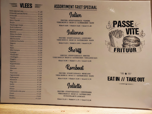 Read moreTop frituur. 50m van de markt. Zeer vriendelijke en behulpzame uitbaters. Attent en met kennis van hun vak. Er zijn een 15-20 tal plaatsen om te zitten. Propere zaak. Uitgebreide keuze aan huisgemaakte burgers. Veel meer dan jouw gewone frituur burger. Deze keer ging ik voor 1 van de friet specials. Een Julien en Romboutje. Een echte studentenklassieker! De stoofvleessaus is vers gemaakt met Leffe. Smaakt naar meer! Lekkere frietjes. Mooi goudbruin, niet van die bleke stokjes. Ze zien er ook mooi krokant uit al waren ze deze keer natuurlijk bedekt in stoofvleessaus. Kan druk zijn, ook op weekdagen. Absolute aanrader en ik kom zeker terug om de andere gerechten te proeven. Die kaaskroket leek te aantrekkelijk om...
