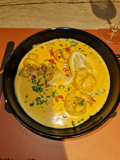 Read moreLe lieu est tout nouveau et agréable même dans son côté brasserie. Dommage pour l'écran plat au mur qui gâche tout. Les serveurs sont pour la plus part souriant et à l'écoute, mais si pour l'und'entre eux on avait l'impression de le déranger, mais l'autre serveur tout sourire a rattrapéle coup. L'endroit étant neuf, tout est très propre. La nourriture est correcte et le prix des plats ne sont pas excessifs. Les frites qui sont en accompagnement sont très bonnes. Mais la mayonnaise sera facturée. Ne comptez pas avoir un petit pot d'olives en apéro ou du pain à table. Les vins sont quant à eux assez cher au rapport qualité/prix le vin rouge le moins cher 29 euros...pour une brasserie c'est pas donné. Mais je me dis que c'est sur les boissons que les restaurateurs font leurs bénéfices et ils en ont bien besoin en cette période Covid qui a fait du mal a l'Horeca. Par contre j'avais pris une dame-blanche en dessert. La glace vanille etait industrielle méga sucrée. Une filet de chocolat en pot industrielle et la crème fraîche est restée dans le même ton...industrielle. Pire glace que j'ai mangée. Conclusion : Correcte pour manger un plat brasserie mais vous ne serez pas transcendé par l'expérience, les vins ne sont pas donnés mais on aide l'Horeca(c'est ce qu'il faut se dire...). Ma mauvaise note c'est pour le dessert décevant alors qu'il y a moyen de trouver de la glace vanille certes industrielle aussi mais de meilleure qualité. PS : la clim va à fond,...