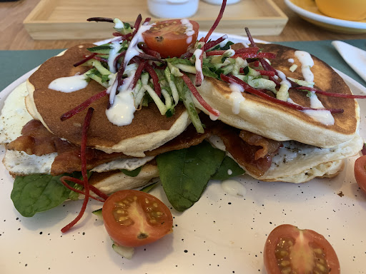 Recently visited this place. We were a little early due to some other previous appointment we had but the staff was so friendly and welcoming to already let us in and warm up. Furthermore the vibe is really nice in the café, a nice combo of a somewhat “hipstery” and people’s café but with some nice class and style to. This is also a co-working place where I assume you can sit all day doing your work and sipping away on their delicious beverages. Concerning our order, no comments. The coffees we drank are perfect. Even the nice (I think selfmade) Amaretti cookies are amazing. Furthermore, I had the pancake burger which fills sufficiently and makes a great breakfast with different aspects of the flavour spectrum you are allowed to experience.