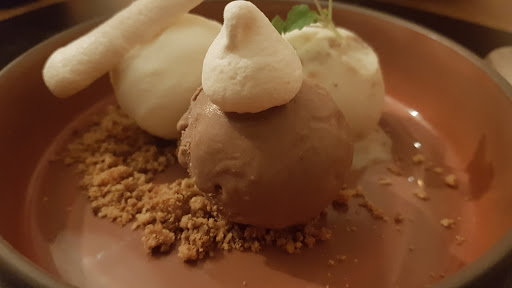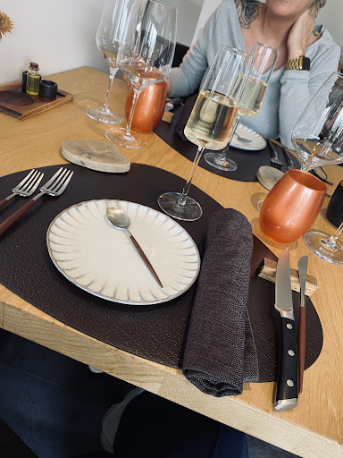 Read moreJ'ai eu l'occasion de voir le chef à l'oeuvre lors des épicuriales à liège. Un concours du genre 'Top Chef' y était organisé. Très impressionné par la rapidité pour dresser un plat. Il avait cuisiné du boeuf ibérique ... délicieux ! Son restaurant gastronomique ne m'a pas déplu. Très belles assiettes. On mange aussi avec les yeux! Quelle multitude de saveurs en bouche. Je pensais sortir en ayant faim ... c'est le contraire, j'ai vraiment dû prendre mon temps pour terminer le dessert. J'ai pris le menu 4 services. Une mini entrée est servie et ensuite un mini potage avant la véritable entrée. Également une boule de glace entre l'entrée chaude et le plat principal. On peut choisir les vins ou se laisser guider. Les vins proposés pour chaque plat conviennent parfaitement. On s'en sort tout compris pour 75 € par personne ce qui est très raisonnable pour une telle qualité. Les tables sont suffisamment espacées et permettent de garder de l'intimité. Le service est très bien et en même temps discret. On se sent à l'aise....
