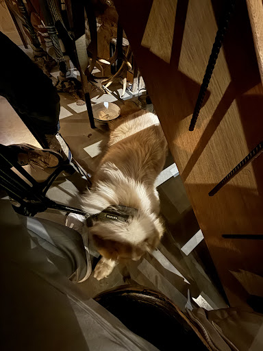 Het was een speciaal concept met prive diner waarbij chef Pascal een menu had voorzien voor Valentijn. Super lekker! Onze hond Freddy was ook meer dan welkom en ze hebben zelfs een speciaal plaatsje voorzien met mee ruimte voor ons en een drinkbak.