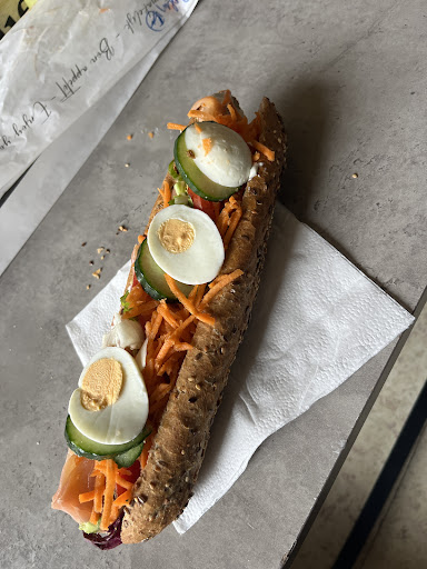 Ik dacht nog steeds dat een broodje er zich van veronderstelde het beleg ertussen te hebben? Tweede keer op een korte periode dat het er ‘op gesmeten’ wordt. Normaal uit de zak halen lukt ook niet! Alles valt eraf, ahja want het ligt niet vast TUSSEN een broodje! Heel erg jammer want opeten lukt echt niet zo… Ook hoef ik op een smosje zalm geen prepare, wat er dus onderaan aanhing… moet zijn van de desks niet goed te...