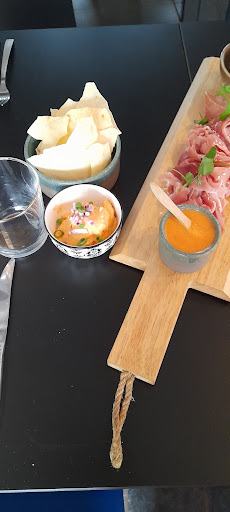 It's a bar that serves a bit of food depending on the time. There's a lunch menu but we arrived in the evening and had the tapas menu. While the food had a lovely presentation and tasted quite good, it only came in small quantities. Too small for my feeling cause it left us with an unsatisfied feeling for the price we paid. We were seated at high tables which were sadly a bit uncomfortable, however the personnel...