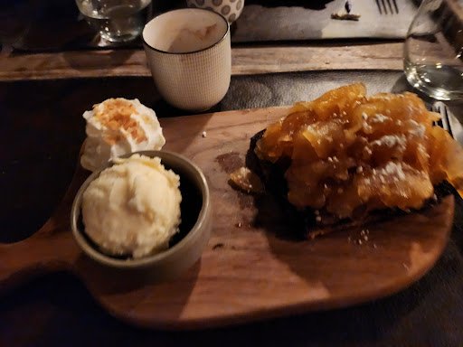 Je vais mettre 5 étoiles mais pour être honnête c’est pour récompenser le service au top. Car niveau cuisine, il y a des choses à améliorer. L’apéritif soupe de champagne était excellent, mon entrée carpaccio de canard à la truffe et au fromage était top, le vin rouge accompagnant ce plat était bien aussi (côte du Rhône). Malheureusement grosse déception au moment où je reçois le plat principal, le hamburger avec brie et sauce liégeoise. Un énorme pavé sec et trop cuit, et les frites alors là c’était tout aussi décevant, j’ai eu l’impression de manger des frites surgelées (la serveuse nous assure que non), les frites c’est la base en Belgique, je sais que c’est du boulot mais selon moi ça fait toute la différence, dommage. Pour la viande trop cuite le cuisinier a proposé de refaire le plat, j’ai refusé mais j’ai accepté de la sauce liégeoise en plus histoire de pouvoir finir. Un mauvais point donc pour le plat, un très bon point pour le service. J’ai fini avec un colonel très réussi. Honnêtement, j’ai l’impression qu’en cuisine, ça galère un peu contrairement à la salle. Nous sommes venu un vendredi soir et le restaurant était plein. Niveau décoration, rien à dire, ambiance chaleureuse, soignée et concept intéressant. Restaurant propre. Niveau de bruit ok. Nous reviendrons avec plaisir malgré le petit bémol au niveau du plat principal. Un tout grand merci à la serveuse énergique qui a vraiment tout mis en œuvre pour que notre repas se...
