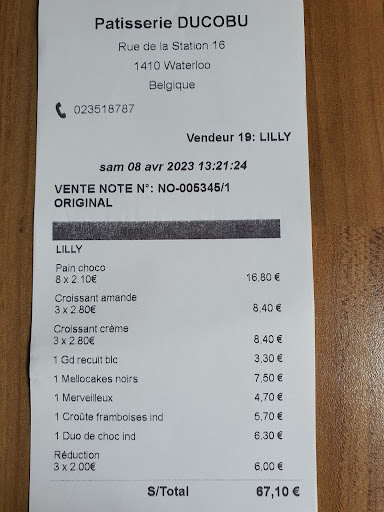 Read moreI walked down a straight road for 12 mins from the train station in a quaint little french town called Waterloo, near Brussels. I stopped at Ducobu, not knowing I was in for the best treat in Belgium! Chef Marc is phenomenal! Each piece of dessert in his shop is pure brilliance and has an impeccable finish! I highly recommend the brioche with almond cream called 'bostock' , the 'Carre Mokka' - chocolate with coffee crunch! I am sure you won't regret anything here! There is a very good assortment of macaroons, savoury biscuits, and chocolates too. Even on Sunday this place was super busy ! Speaking a bit of french while at the shop would be...