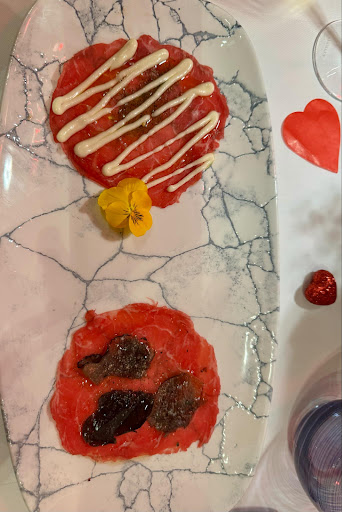 Nous nous sommes rendues dans ce restaurant le jour de la saint Valentin , le menu était prometteur et honnêtement nous n’avions aucune intention de venir car nous avions une réservation dans un autre restaurant (etoilé) malheureusement leur site a eu un beug et notre réservation n’est pas passée …