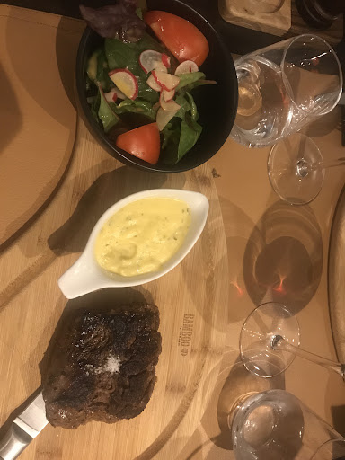 Read moreNous avions rĂ©servĂ© une table pour 19h00 en aoĂ»t dernier. Rien Ă redire Ă la nourriture qui Ă©tait excellente, les viandes parfaites ainsi que la cuisson. Le personnel sympathique mais lent. Ce qui nous a vraiment déçu Ă©tait le service ainsi que l'attente alors que nous n'avions commandĂ© qu'un plat. Nous avons quittĂ© l'Ă©tablissement Ă 21h30... Faites le compte, deux heures et demie pour un repas d'un seul plat, sans entrĂ©e ni dessert. C'Ă©tait peu aprĂšs la rĂ©ouverture du restaurant aprĂšs le mois de fermeture, ce qui pourrait peut-ĂȘtre expliquer la mauvaise organisation du service. Aussi, nous avions demandĂ© un morceau de 100g de viande Ă emporter, pour finalement nous annoncer que la viande avait Ă©tĂ© jetĂ©e... Le mojito que nous avions reçu en apĂ©ritif n'avait de "mojito" que le nom. On ne goĂ»tait ni le sucre de canne ni le rhum, avec trois pauvres feuilles de menthe recouverte de gros glaçons cubes (pas de glace pilĂ©e, çà à la limite cela aurait pu encore passer). Bref, un verre d'eau aurait pu tout aussi bien faire le mĂȘme effet mais 3 fois moins cher. Amateurs de viande, je vous le recommande en faisant abstraction de...