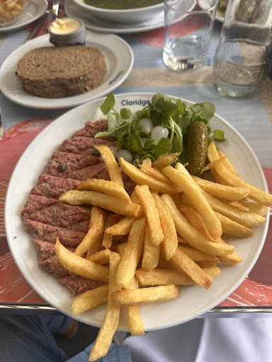 Read moreLe Claridge; un restaurant cĂ©lĂšbre, bien desservi, Ă la forte impression. Laissez-moi vous donner la mienne. Une Ă©lĂ©gante façade couleur blanchĂątre sâĂ©lĂšve sur le fond gris de la chaussĂ©e. Ce contraste est accentuĂ© par une silhouette de jais, dont la droiture nous rappelle un manchot sur sa banquise; le voiturier. ĂlĂ©ment phare de lâĂ©tablissement, celui-ci, de son costume pingouin, nous escorte jusquâĂ lâintĂ©rieur. Une vĂ©ritable marche de lâempereur. Une fois rentrĂ©e, une ambiance chaleureuse sâoffre Ă nous. Un personnel pimpant nous accueille dans un lieu ,qui malheureusement ne lâest pas autant. Lâagencement des tables Ă©voque une brasserie conviviale pour certains, une cantine trivial pour dâautres. Enfin. Bien installĂ©, mes compagnons et moi-mĂȘme avons passĂ© commande. Durant le cours laps de temps qui nous sĂ©para du service, la mĂȘme question nous traversait tous: Quâest-ce qui justifie les prix salĂ©s de la carte ? Serait-ce les beaux tableaux, les verres et allumettes Ă leur effigie ? Ou alors les sets de table en papier et la coutellerie de chez IKEA ? Amusante gestion de fonds. Alors, une gracieuse demoiselle vint nous servir dĂ©licatement. Malheureusement les mets nâĂ©taient pas Ă son image. Nous avions la rĂ©ponse Ă notre question. Les plats intitulĂ©s « de rĂ©sistance », contrairement Ă leur noms, Ă©taient dâune triste passivitĂ©. Dans un restaurant de cet acabit nous dĂ©sirons manger bien, pas forcĂ©ment manger vite. Il nây avait tout bonnement pas de prĂ©sentation. Ce que vous avez gagnĂ© en rapiditĂ©, vous lâavez perdu en qualitĂ©. Ces retours ont pour but dâĂȘtre constructif et n'enlĂšvent rien au bon moment passĂ© chez vous, certes un peu cher payĂ©. Nous reviendrons pour lâheure du goĂ»ter en espĂ©rant dĂ©couvrir un rapport qualitĂ© prix...