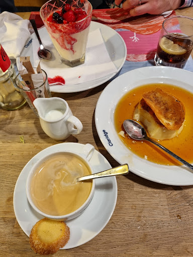 Terrible experience. Waited over 1 and a half hours for our food, and even after that time, they still didn't bring everything. They neglected to bring 4 portions of chips despite being repeatedly asked and when the 2 portions (still 2 lacking) arrived, all the main meals were finished. They brought the sauce for the chicken only after being asked. One portion of chips was removed from the bill but not the other that was missing, which was still charged within the cost of the meal it was meant to accompany. Vegetarian option was dreadful- a few sad looking vegetables and some couscous on a plate. Food ridiculously overpriced and staff overworked- simply not enough staff for the amount of customers in the restaurant. The waiting staff were polite enough but clearly stressed. It felt as though our dissatisfaction was not taken seriously by some of the waiting staff and most definitely the maĂźtre de. We were offered free coffee as compensation by one of the nicer waiting staff, but quite frankly that does not go far enough to make up for the whole uncomfortable experience. Would not recommend...