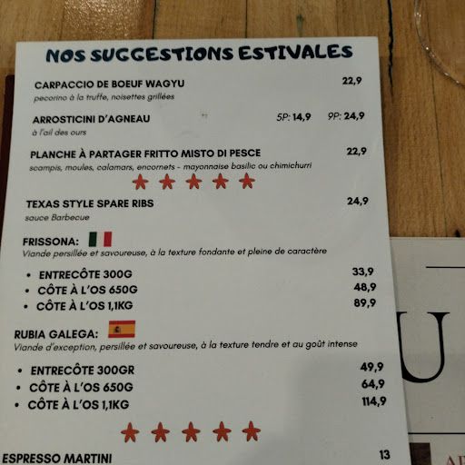 Notre premiĂšre expĂ©rience, il y a 6 mois n'Ă©tait pas mĂ©morable. Il n'y avait que 2 serveurs pour une salle pleine. AprĂšs avoir attendu prĂšs de 45 minutes, le serveur plus ĂągĂ© est venu prendre et reprendre notre commande de boissons Ă 3 reprises car il oubliait toujours quelques choses. Les viandes Ă©taient correctes mais pas excellentes. Rien d'exceptionnel. Bref, 6 mois plus tard, je dĂ©cide de leur donner une seconde chance. Cette fois, bien que le service Ă©tait correct, la cuisine Ă©tait juste honteuse. Nous avions commandĂ© des lĂ©gumes grillĂ©s qui ne sont jamais arrivĂ©s. Les pommes de terre au four qui accompagnaient notre poisson, Ă©taient froides Ă l'intĂ©rieur. Elles donnaient l'impression d'avoir Ă©tĂ© cuites la veille, laissĂ©es au frigo et juste grillĂ©es sur la face dĂ©coupĂ©e pour donner l'illusion d'une pomme de terre au four. Inadmissible pour un restaurant de servir de la sorte un aliment si basique. Les serveurs Ă©taient bien ennuyĂ©s. On a offert notre apĂ©ro, mais on est sorti de lĂ affamĂ©s et avons tout de mĂȘme payer 56 euros pour 2 malheureux filets de dorade trop cuits, sans accompagnement. Bref, je n'y mettrai plus...