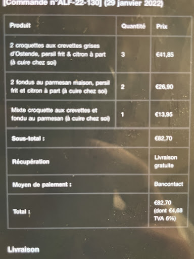 J'ai commandé des croquettes aux crevettes pour ma filleule de 11 ans, clairement allergique aux amandes. Bien que l'emballage ne mentionne aucune amandes parmi les ingrédients, elles étaient présentes dans la chapelure. Résultat? Un choc anaphylactique, une injection d'Epipen - dont le nombre d'utilisations est limité dans une vie - et une nuit à l'hôpital pour ma filleule. J'ai contacté le restaurant qui, malgré la confirmation de la présence d’amandes, a montré une indifférence totale, sans même présenter d'excuses. J'ai également envoyé un mail détaillé, resté sans réponse. Un service honteux et une négligence inexcusable. Évitez à tout prix.