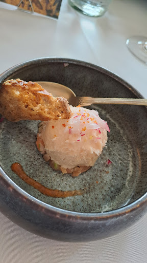 Read moreD'où viennent ces 4 étoiles à cet établissement ?? Service très moyen, 2 petits jeunes, serviables, mais sans formation. Bouteille de vin ouverte, le serveur n'a même pas senti le bouchon et a servi tout de suite le vin, sans faire goûter. Il mentionne 'je ne suis pas oenologue'. Ok, et alors ? Laissez le client vérifier que le vin n'est pas bouchonné ... Avons pris un menu. Entrée Tartare de veau : pas de goût, gros morceaux. J'ai dû ajouter du poivre. Seconde entrée Noix StJacques, heureusement car c'est le seul plat qui était agréable à manger. Plat principal Parmentier de joues de boeuf. Je ne me souviens pas avoir un jour laissé la moitié de mon plat dans un restaurant, mais la viande était dure, avec des morceaux de second choix. De nouveau peu de goût. Quant aux tranches de truffe qui surmontaient le plat, aucune odeur, aucun goût. De la truffe chinoise très bas de gamme. Et le dessert Canelloni crémeux orange chocolat, franchement bof. Une note salée pour une soirée ratée. Bien dommage. Nous n'y retournons bien sûr pas et ne ferons pas...