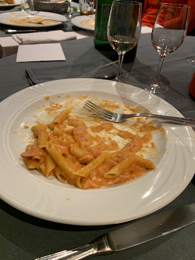 It was a family meal early in the evening, so we were the first clients. A warm welcome from all. The restaurant is long and quite narrow, which is means you are not totally surrounded by other diners, so a comfortable environment. The pizzas were very good indeed, well cooked with fresh ingredients. House red wine was typically light and soft. The lamb dish taken by one was cooked to perfection, although the vegetables were slightly overloaded with oil. The deserts were well recieved. The tiramisu was greatly appreciated, and the cheese platter was also well balanced with good portions. Overall an enjoyable experience, although perhaps...