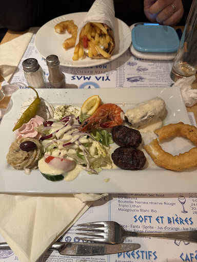 Les plats idem. Mon Mari commande une grillade mixe. La quantités de viande est ridicule. Il avait dans son assiette, une saucisse, une brochette poulet, une brochette bœuf, une côte d'agneau et aucun gyros chercher l'erreur... Mon plat était pas compliqué, des calamars frit, 4 et indusriel en plus et la même salade que poyr le mezze. Nous avons en plus attendues une plomb entre l'entrée et le plat.