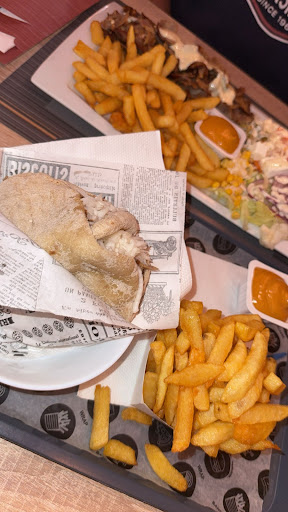 Really disappointed, I ordered a mexicano which is just a sad piece of food, no idea what that is, 3 50 Euros one, and large Fries, nothing special about them really, 4 Euros and NO sauce, what the actual heck. One sauce is 4 Euros??? I can buy a whole bottle of sauce for that price. Service was also really long, like 15m. Huge...