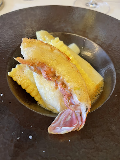 Read moreHoog gespannen verwachtingen die niet volledig werden ingevuld. Het verrassingsmenu is braaf en niet altijd inventief. Schotels ogen mooi, maar zijn beduidend minder smaakvol dan verwacht. (Ravioli- burata- langoustine) andere zijn dan weer te simpel en niet verfijnd genoeg (pasta met ragu van ossobuco). Mooie wijnen op de kaart. Service uitermate vriendelijk maar een beetje amateuristisch. Momenteel is de verhouding prijs-kwaliteit niet in balans aangezien we voor 4 personen een rekening hadden van 510 euro voor het verrassingsmenu waarvan 3 met aangepaste wijnen. Er is nog werk aan de winkel om iets smaakvollere gerechten te presenteren of de prijzen van de gerechten aan te passen. Akoestiek in het restaurant...