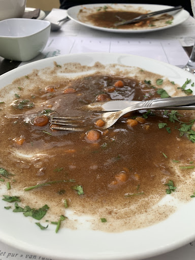 Read moreDe stoofvlees zat vol met harde stukken en dikke zenen. Bah! De smaak was eigenaardig. Bovendien was de rekening 30% te hoog!! Toen ik de eigenaresse erop aansprak kwam ze met een onsamenhangend en onlogisch verhaal over een eerdere keuze voor kip i.p.v. stoofvlees en liep ze naar de kassa en legde ze het verschil contant op tafel. Heel vreemd, want we hadden haar nog niets betaald. Chaotisch tafereel tot gevolg. Ze had 2x 34 euro ipv 2x 23 euro per hoofdgerecht gerekend. De verklaring die ze gaf was dat we eerst kip wilde. Dat sneed geen hout: We wilde geen kip, we vroegen slechts of het filet was; Het kipgerecht was 20 euro; Er staat niets op de kaart van 34 euro.