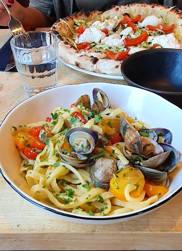 Read moreNous y allons régulièrement luncher depuis l'ouverture, et chaque fois c'est un émerveillement du goût : une pâte qui reste croustillante jusqu'à la fin de la pizza (d"habitude, cela devient du caoutchouc après 10 minutes !), une carte alléchante (pizze classiques, pizze "modernes", pâtes magnifiques...), des suggestions quotidiennes en plus de la carte, un service faisant preuve d'une parfaite eumétrie (ni trop distant, ni trop proche, parfait !), une sélection de bons vins à prix abordables (goûter le San Simone blanc, il vaut le détour), et, je n'ai pas peur de le dire, probablement les MEILLEURES pizze napolitaines de Belgique. En fait non : je viens de passer un mois à Naples, et n'en ai pas trouvé d'aussi bonnes. :) Cadre agréable, patron accueillant (et généreux, il n'est jamais le dernier à offrir un verre aux habitués), service efficace. Que demander de plus. Je mets 11/10. NB: goûter aussi les pâtes al Matriciana, très belle recette. Evidemment, il faut y aller pour les pizze et les pâtes, c'est ce qu'ils font de mieux. Si vous aimez boeuf, poissons et légumes, il y en a parfois à la carte, mais cela reste un excellentissime resto pizzas et...