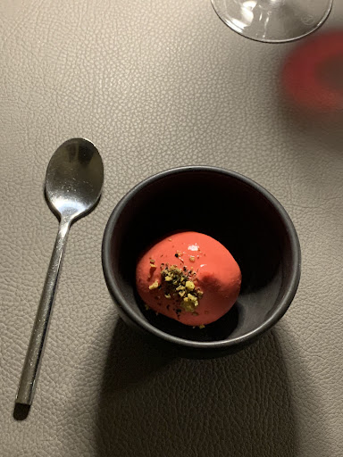 5 gangen menu genomen met aangepaste wijnen waar er paar lekkere tussen zaten die goed pasten bij het eten. Overal wat amuses of kleine soepjes tussendoor en ook een lekkere sorbet gegeten.