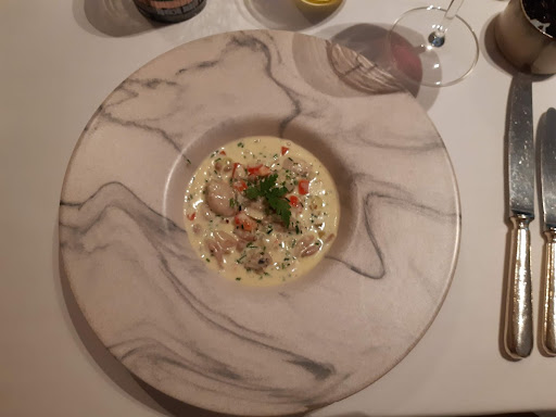 Read moreWe hadden dit etablissement gekozen via de website van Michelin. Het gebouw en interieur zien er mooi en verzorgd uit. Vriendelijk onthaal, uitleg van het menu en het wijnarrangement. De zaak was volzet. Het menu werd gekozen, ik bestelde gerechten van de kaart. De kaart is zeer uitgebreid. Heerlijk stoofpotje van kikkerbillen (€19,50) als voorgerecht, mijn filet pur (€33)werd gebakken zoals gevraagd. Het voorgerecht vond ik daarentegen niet verfijnd, het was redelijk 'zwaar'.Verder enkele punten ter verbetering. Zo was de pepersaus bij mijn filet pur niet gebonden en de mayonaise deels geschift. Verder werd het 2e glas van mijn rode wijn (€8) te koud geserveerd. Dit niet aangegeven omdat men druk was met de andere gasten. De lijn tussen prijs/kwaliteitsverhouding is wel dun. We hadden een...