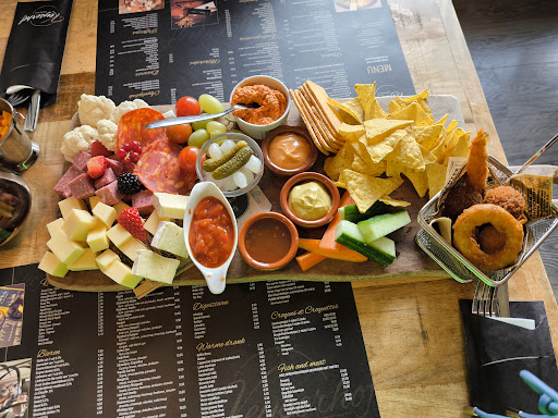 Read moreIdeaal met kindjes, grote speeltuin en springkasteel. Geen al te grote menukaart, beperkt tot 4 gerechten per tafel, kindermenu niet inbegrepen. Er zat veel volk binnen waardoor wij op het terras meer dan half uur moesten wachten voor we iemand zagen, waarbij we dan zelf nog kenbaar moesten maken dat we aperitief en aperoplank wilden bestellen. de burger met bacon was wel lekker. Aperitief en hoofdgerecht gegeten, niet meer gebleven voor...