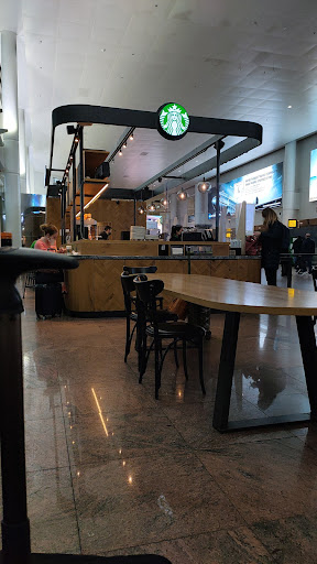 There were four people behind the counter, but no one seemed to be working. There was no line, but when I got to the counter the cashier grabbed my wrap and just looked at it, and when I tried to talk to her she just interrupted me and started singing and talking to her colleagues. I asked her if it's possible to get one of the lattes vegan and she didn't seem to understand me, and one of her colleagues said it is vegan "it's just syrup, espresso shot and milk, it is vegan". I told them that it's not vegan then, and he just said that it contains no ham, or chicken so it's vegan. They had to get a third person to say that it's possible to make it vegan if you change the milk. Fortunately for me, I'm not super allergic to milk, I "just" get a stomach ache, but if you are allergic then you should definitely avoid this place. They also struggled with the English language, which is strange since they work at an airport. The coffee in itself is fine, basically what you expect from a Starbucks, and the atmosphere is...