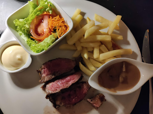 Read moreGisteravond gaan eten, was tegen gevallen, eten was niet warm, frietjes niet uitgebakken,de patatjes bij het vlees ook veel te droog, vlees te hard gebakken en zeer droog, bij het dessert pech melba was het fruit niet rijp,geen smaak en zeer hard.De frenchkoffie trok op niks, was in een glas voor irish koffie.Mijn idee is als er teveel volk is kunnen ze...