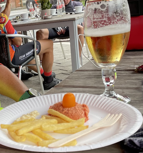 Auf unserer E-Bike Tour durch Belgien kamen wir auf unserer Tagesetappe von Waregem nach nach Aalst im Ort Zwalm am âIn de Patrijsâ vorbei. Es war Zeit fĂŒr einen âBoxenstoppâ, so dass wir drauĂen Platz nahmen und bei der freundlichen Bedienung ein Bierchen bestellten. Wir kamen mit unserem Tischnachbarn ins GesprĂ€ch, der gut deutsch sprach, weil er in DĂŒsseldorf beruflich zu tun hat und uns von Kneipen erzĂ€hlte, die wir auch kennen. Ăberrascht waren wir, als uns die Bedienung zum Bier eine Art belgisches Tapa reichte. Das war ĂŒberaus freundlich und hat...