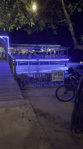 We stayed in hotel close to this bar. Went there two times. First night was ok. We had some drinks and some bites. When we were leaving they told us that next day dj would be playing in their bar. We decided to came back next evening. Want to say food was good, we liked it a lot. Drinks was good first night, second night was good too, but first night was better. I would probably come back to this bar (especially because it is so close to our hotel), but after today's accident, I would never go back there again and don't recommend to anyone. We had great dinner today. Dj was playing some music, but I think it was a bit boring, and even nobody was dancing. After dinner we asked our check. Server brought us check ($63 bz). We gave $100 bz ($50 us). Server took check with money, turned out from our table, made few steps and dropped money to the floor, and $50 slick through the hole in the wood to the ocean. When it happened, he was like , "oh no, again!" Those were his words. Few minutes he tried to look it up with his flash light through the holes in the wood (it was so dark by the way). My husband tried to help him as well. Of course because it was already night, they even didn't see it anywhere in a ocean under the dock. I was wonder what would happened next. So many years I worked in restaurant business, and a lot of situations were solved by me. We are not rich family, and working hard too, to pay all our bills. Whatever we were ok didn't have a change.. of course our dinner even wasn't worse $50 (my husband even doesn't drink alcohol). So, the most what was shocked me it when Server came back and told us, if we ready to "compromise". My first thought was that he is so sorry that he cannot give us change, and migh offer us another drinks. But he was telling us, to pay our bill again!!! Excuse me.. what??? I told him that we gave him money, and he dropped it! He started to tell us that it was kind of our fault that we didn't put money under clipper… he added that it was up to us, but he had to put his own money to pay a bill, and it would be nice if we paid it again. He told us that he would give us some minute to think about it, and left. I was really shocked with service. I asked him how he was going to give us our change. I think he even didn't think about it. I asked to call manager. He said that manager is not there. I asked anybody who was lead Server. Another guy came and was so nice. He said sorry about everything happened and offered to us some drinks. We reject offer and left with very bad mood. I will never come back to...