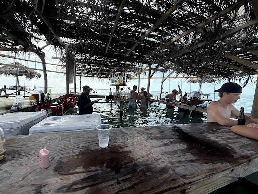 Water: You can walk out for about 200 yards and you’re only waist deep. The water is clear and great for snorkeling. You walk out to the floating bar for drinks and food or grab picnic table nestled in the water