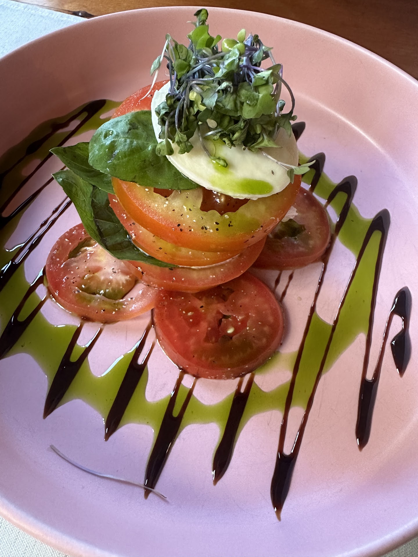 We started off with the Caprese Salad. This was a perfect start to our meal and perfect on a hot day. The presentation was beautiful and it was delicious.