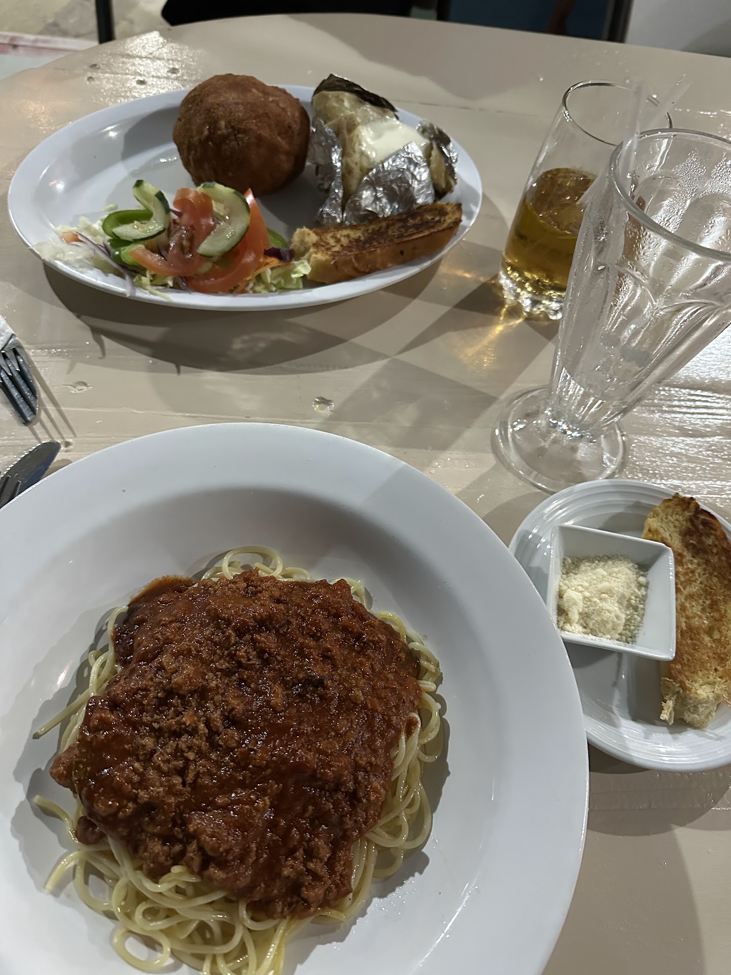 The beans were a tad too salty for my taste but were good. I should note that most people wouldn't think the beans were too salty. I use little salt in my cooking so I find much restaurant food to be over salty. The fry jacks were fresh, and hot as well. The only way to have them is that way.