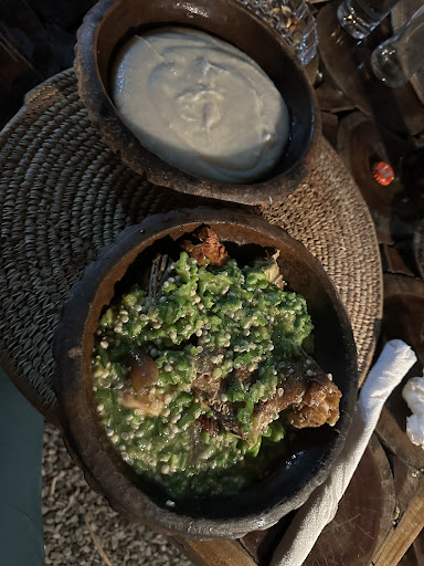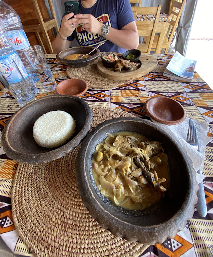 Yo viajé a Benín para hacer algunos reportajes como periodistas de viajes y doy gracias de haber conocido a la familia que hay tras las puertas de este lugar. Me permitieron hacerles un reportaje en profundidad de la gastronomía beninesa y nos ofrecieron dos platos típicos exquisitos: AMIWO CON POLLO A LA BRASA y SALSA GRAINES CON ARROZ. No dudéis en pedirlo.