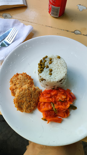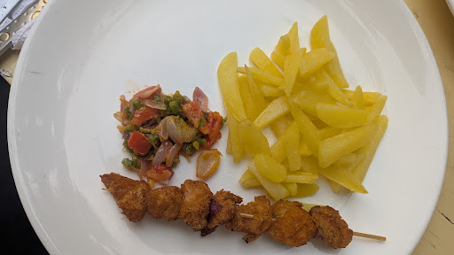 Read moreÀ éviter! Quelle déception!! Cuisine froide, sans goût, du caoutchouc dans la bouche, portions petites à prix élevé, pizza semi cuite et huileuse, frites non frites plutôt patates cuites dans l'huile, brochettes de soya froide à l'arrivée retournée en cuisine puis complètement frites c'était immangeable tout simplement. Pas de mayonnaise ni ketchup non plus. Service très lent et déplorable tant la pauvre fille ne comprenait pas la moitié de ce que l'on demandait. Il a fallu lui répéter plusieurs fois et encore les plats ont mis plus d'une heure à arriver un par un avec plus de 5 minutes entre chaque (pizza, frites et une brochette de soya) et nous étions les seuls deux clients. Mis à part le jardin fleuri et propre, ce restaurant est une totale déception. 14500 f pour ça...