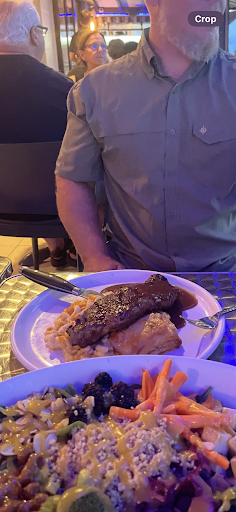 Stopped in for a drink with my husband Sunday afternoon. The hostess (now know it was the manager) was unfriendly and unwelcoming. Instead of seating us she proceeded to organize menus for a minute or two and once she was finished told us to follow her. We immediately felt uncomfortable being there. We sat on the patio which was beautiful. Our server was friendly and the drinks and white bean dip were good. During our drinks, the lady who had seated us (manager) came out and started arguing with our waitress about why the tables out there weren't set. The manager kept going on and on and she was directly behind us. She then started taking plates and cutlery out and slamming them on tables behind us to set the tables. It ruined the atmosphere to hear all of this arguing and slamming. We found all of these actions on her part to be extremely unprofessional. We needed our bill but couldn't get our server back for a very long time as a cruise ship had brought more guests in. There was a male server there that was very friendly and helpful and he was eventually able to help. Overall, the vibe and service was not good and we would not go back, which was disappointing because the view of the...