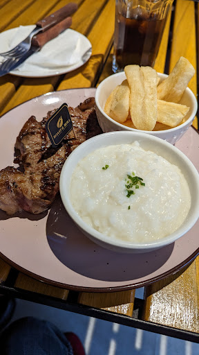 Se pide hacer reserva, pero sin embargo, el servicio tardó en entregarnos el menú siquiera, nos indicaron que existía un retraso en la cocina de 45 minutos, hicimos el pedido y en lo que nos traían las bebidas, pedimos unas empanadas para pasar el tiempo y no morir de hambre. Con ese retraso de 45 minutos, casi habremos esperado hora y cuarto. El mesero nos indicó que la comida ya estaba y solo faltaba emplatar, cuando llegaron los platos, todos estaban fríos, el emplatado era la carne y las dos porciones en un platito individual, a mi mamá le trajeron las guarniciones incorrectas, y en lo que iba comiendo, mi carne estaba cruda. Volvieron a mandarla a la cocina y recién ahi probamos (Porque eso hicimos, todos a probar un poco del plato del otro) recién sentíamos sabor a carne a la parrilla caliente. La mesa en que nos acomodaron pronto le llegó el sol y tuvimos que moverla, cuando notaron eso recién nos dijeron que podíamos movernos a otra mesa, cabe recalcar que habían muchas mesas disponibles en todo momento, indicamos que no era necesario porque ya casi acabábamos nuestra comida. Los meseros se disculparon con nosotros en al menos nueve oportunidades y de cortesía nos ofrecieron una sangría. Ojalá las otras sucursales tengan mejor atención, pero creo que cuando uno pide carne a la parrilla, espera que esta esté caliente y en el término correcto. El emplatado no era elaborado como para justificar que en eso se enfrió, creo que los platos se deberían despachar calientes, y el mesero que atiende debería estar atento a su orden. Otras dos familias llegaron después de nosotros y se fueron antes, sus ordenes subieron y todo, no sé si las nuestras se acumularon en lo que se cocinaban las nuevas. Y insisto, me parece ilógico que una carne pedida en termino medio, a parte de llegar fría, llegue cruda a la mesa, ninguno de los cuatro platos que pedimos estaba siquiera tibio como para imaginar que por ese plato los demás se enfriaron.