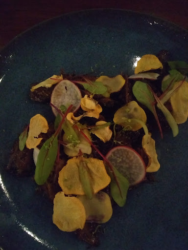 For an appetizer, we got a dish made up of various textures of corn. It was awful - it seemed that the enthusiasm for the ingredients lead to putting way too many different foods on a single plate - what made it particularly hard to eat were the candied cubes of purple corn, which were surprising (not in a good way) and hard to avoid in the dish.
