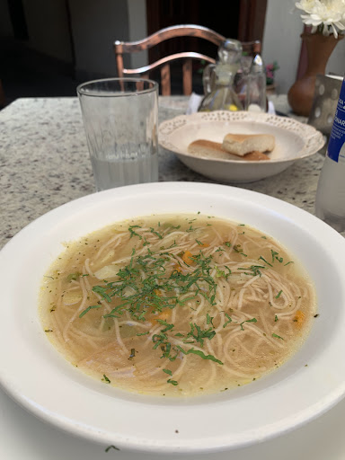 Great vintage colonial atmosphere. The lunch was priced at 65Bs for a great fresh selection in the salad bar. The soup of the day was sopa de maní, which was one of the best iterations of the soup I ever had. It was the right consistency with the best peanut flavor. The segundo, had a great variety of proteins. The steak was well seasoned and paired with a delicious creamy sauce. The steak was well done, which I am not a fan of so it would be nicer if they could ask for steak temperatures since some of us like steam more on the rare side. The fettuccine Alfredo pasta lacked some proper cheese, although it was creamy, it lacked some flavor and salt that usually derives from the cheese. Desserts, we picked flans and they were great.