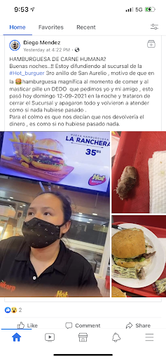 Read moreHace tiempo que visito regularmente la Hot Burger, y como siempre su comida es de excelente calidad, lo que te tengo que procesar esta vez es en la atención, ya que me tocó sentarme en una mesa que le habían limpiado muy mal, con restos de comida sobre los asientos y no había personal de limpieza, además el piso se veía sucio sin trapear en especial en la parte de afuera muy descuidado.