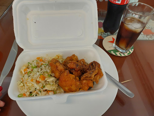 No siento que puedo dar una total experiencia sobre la comida aunque aún es importante y es que yo realice el pedido por la app tapeke, me costo 28bs el pollo rebozado con verduras y arroz, no se parecía a la foto, no tenía verduras El pollo tiene un sabor aceptable, como el de cualquier polleria, lo q si tengo q resaltar es que todas las piezas me salían con esas manchitas cerca del hueso, pero no le di importancia pq no sabia mal, un poco grasoso si pero es como cualquier pollo broaster El arroz también normal, como el de cualquier pensión La coca cola me costo 12 bs Lo que si destacó totalmente es que tienen aire acondicionado y hace el lugar muy refrescante y la buena atención del mesero, muy amigable. La comida, quizá por que yo pedí de esta app q justamente se trata de los pedidos q nadie lleva, no me pareció ni buena ni mala, en relación precio siento que es muy similar a comer en lugares como pollos kingdom o solar Lo que si igual no me gusto es la supuesta salsa que se ve en una de las fotos como un líquido negro, parecía agua con aceite, no tenía sabor apenas tenía color...