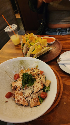 -Original comment- The atmosphere and location are nice. The place looks nice and cozy. The food was okay, not a lot of flavor in the burritos (vegetarian and pollo crujiente) without sauce or pico de gallo (which tastes nice but was served at a tiny amount with the burritos).