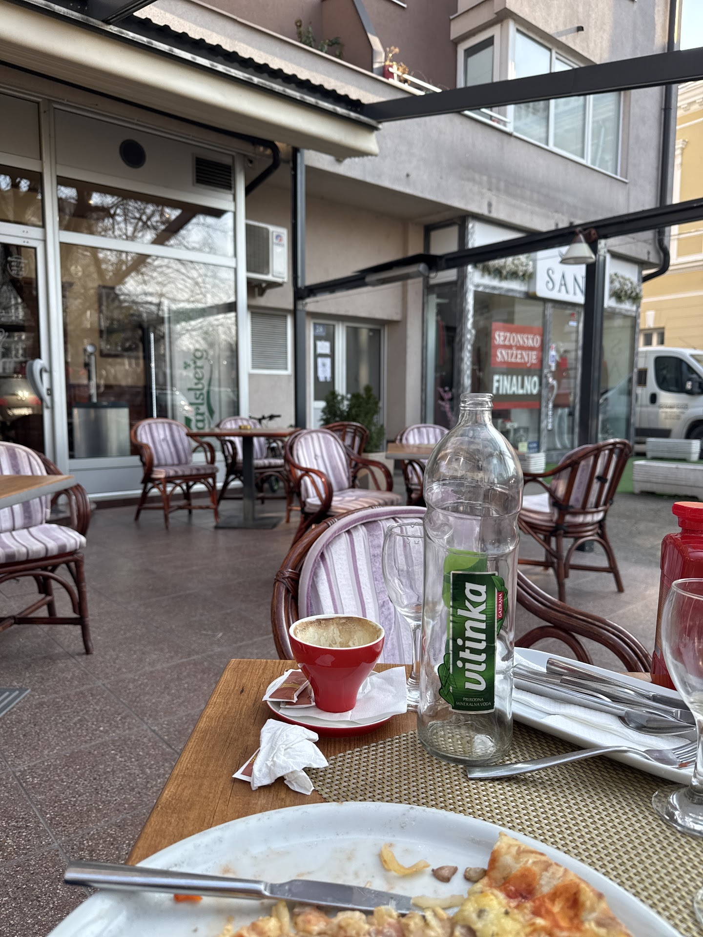 Read moreNisam osoba koja dijeli negativne recenzije. Uvijek smatram da nije svačiji okus ili ukus isti da ne mora meni biti dobro ako nekome je ili obratno. No danas nakon stotine restorana moram ostaviti primjedbu koja je katastrofalna. Dakle raspitivati smo se kad smo dobili ponudu što naručit. Uzeli smo najskuplju mesnu platu. Nitko nam nije rekao da ćemo čekati na hranu 1.20 min a kamoli da kuhinja ne radi kako treba, da nemaju namirnice i da se odmah može dobiti samo pizza capricciosa jer sve drugo nije kako treba. Nakon 50min čekanja smo čuli konobara kako to govori za susjednim stolom. Nakon odlaska za šank rečeno je da se servira. Ljudi moji mene je bilo sram ista reci kad je stiglo za stol a i kolegu sam ispod stola s nogom da šuti. Nabacano jedno na drugo. Karađoredeva šnicla - strasno Pohrana salama i sir uz jedan kao rezanac tanko mesa. Nekakvu ostaci sa roštilja nabacani među povrće sa umakom. Nikada ali nikada tako nešto nisam vidjela Nikada. Pokusali smo jesti jer smo bili jako gladni, ali nije išlo želudac se dizao. Rekli smo uljudno. Konobarica se ispricavala, a kad smo rekli da se javi gazdi. Kaže zvala ga je i zaključak je da se tako servira. Ostavili smo 90 maraka i nisu bitni novci Mogli su uz ispriku bar piće ponuditi. Jer ljudi su ljudi. Mogli su reci da narucimo pizzu ili sendvic. Mogli su reci bil sto ali donijeti nam ostatke nečijeg jela NIJE FER. I svašta smo mislili ali nije fer ni prema ljudima koji tamo zarađuju za kruh. Dakle Nikada više Ispričavam se ali zaista sam morala jer sam...